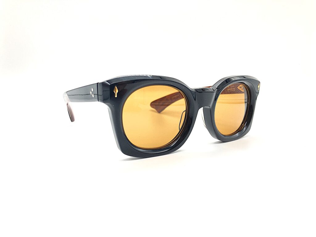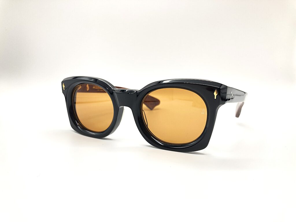 JACQUES MARIE MAGE(ジャックマリーマージュ)「ELMYR(エルミア)」は、1970年代のスタイルを彷彿とさせる、力強くも洗練されたスクエアシェイプのモデルです。このモデルは、伝説的な美術品偽作師として知られるエルミア・デ・ホーリー(Elmyr de Hory)から着想を得てデザインされています。彼の謎めいたパーソナリティを反映したような、大胆かつアーティスティックな表情が特徴です。
